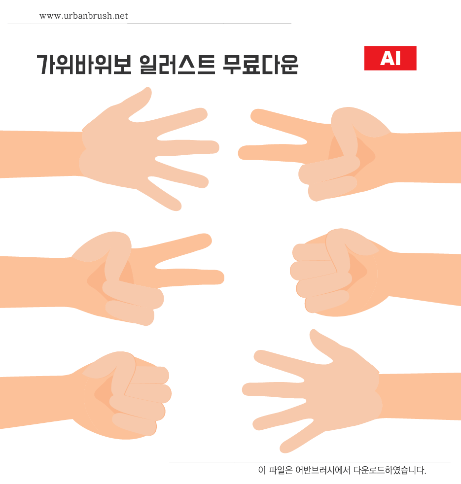 [KR] 안녕하세요. 어반브러시의 Master Creator Tommy입니다. 아래 이미지는 가위바위보 일러스트 ai 파일 샘플입니다. 이벤트행사장이나 가위바위보와 관련된 디자인물에서 활용할 수 있는 가위바위보 일러스트 이미지입니다. 파일을 다운받아서 가위바위보와 관련된 디자인물에 활용해보세요.