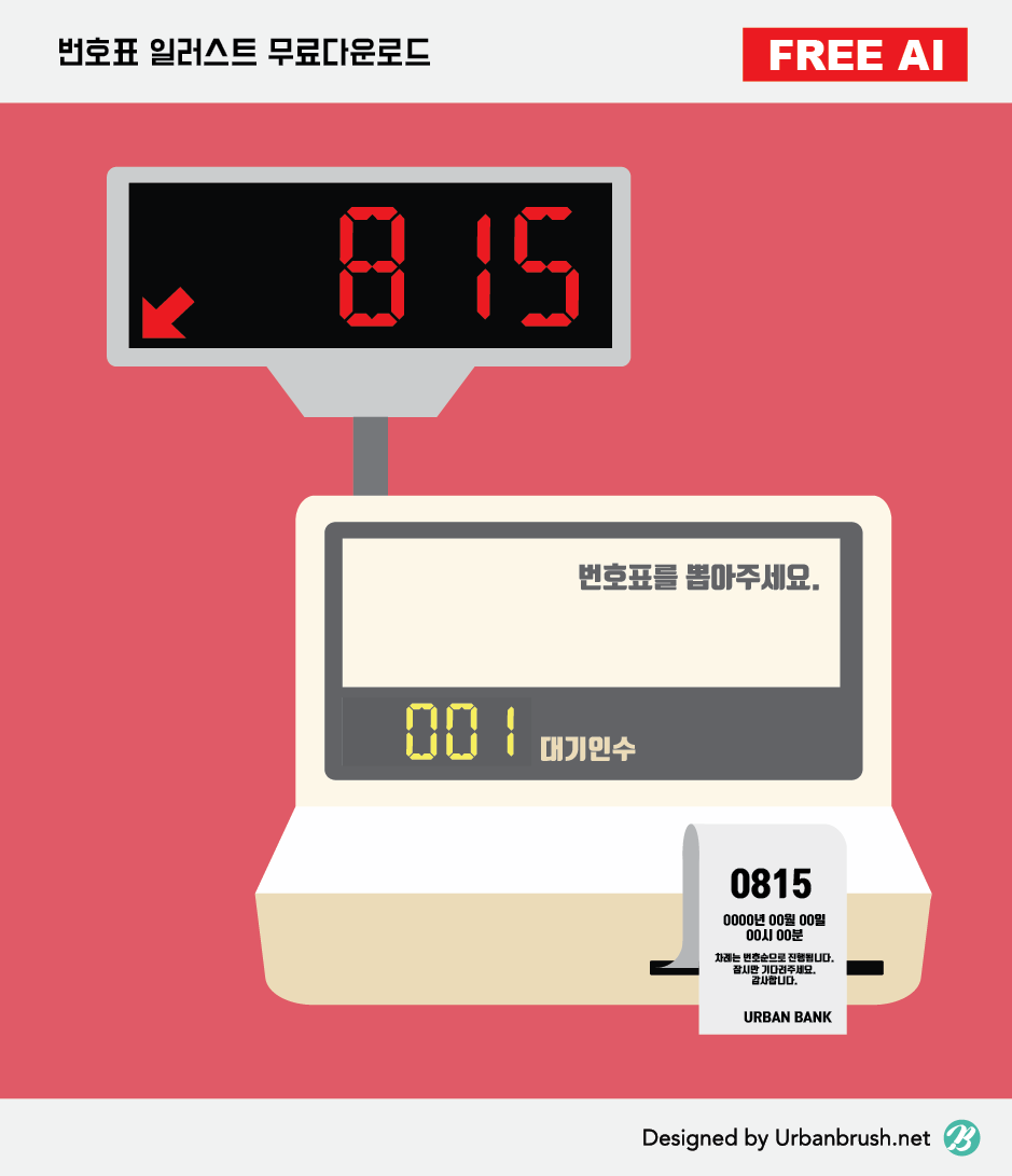 [KR] 안녕하세요. 어반브러시의 Master Creator Tommy입니다. 아래 이미지는 번호표 일러스트 ai 파일 샘플입니다. 은행이나 관공서 등에 가면 쉽게 볼 수 있는 순번대기표를 일러스트로 표현한 이미지입니다. 번호표를 뽑는 기계와 함께 전광판 그리고 번호표로 구성되어 있는 일러스트 이미지입니다. 은행, 공공기관, 관공서 등과 관련된 디자인물에서 활용하기 적합합니다. 파일을 다운받아 번호표와 관련된 디자인물에 활용해보세요.