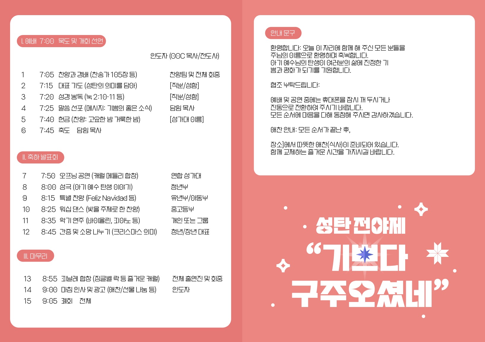 추천 카테고리 : 성탄전야제, 크리스마스, 성탄절, 예배 순서지, 주일학교, 성탄축하예배 순서지, 포스터, 전단지, 성탄축하예배순서, 송구영신예배주보, 주보 디자인, 성탄절주보, 순지양식, Christmas Eve, Christmas, Christmas, worship order, Sunday school, Christmas celebration worship order, poster, flyer, Christmas celebration worship order, Songgu Youngshin worship bulletin, bulletin design, Christmas bulletin, Sunjiyang