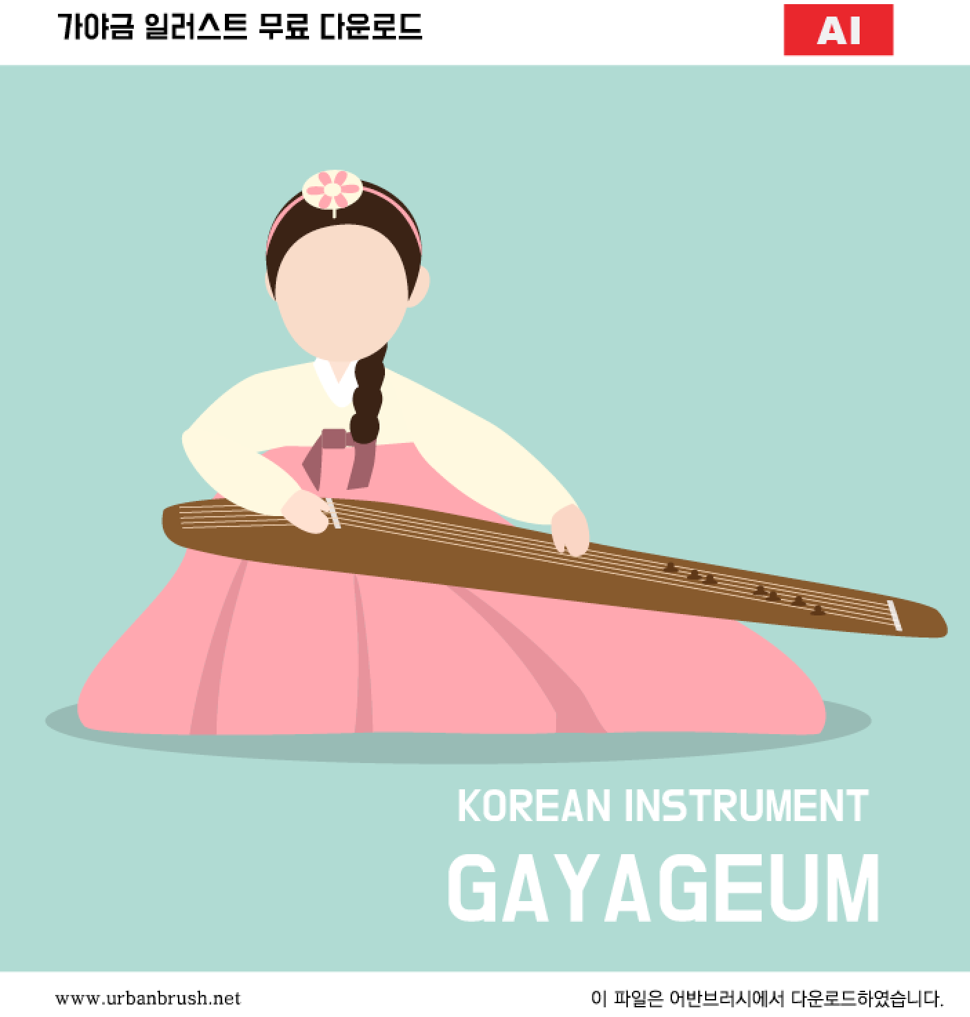 [EN] Hi. Urban Brush’s Master Creator Tommy. The image below is a sample of ai file with a Gayageum player illustration. It is an illustration image depicting a scene of a woman wearing a hanbok playing a gayageum. This image is suitable for use in design related to Korean traditional culture, history, sightseeing, holiday, New Year, New Year. Download the file and use it for design related to Gayageum.