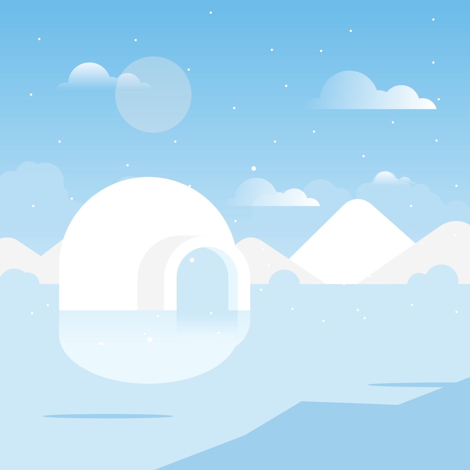 [EN] Hi. This is Urban Brush. The image below is a sample of ai of a winter igloo background illustration. This is an illustration image expressing an igloo on winter ice. This is an illustration image depicting a landscape on ice in the middle of winter. This is an illustration image suitable for use in categories related to igloos, winter, winter background illustrations, ice, the North Pole, the South Pole, and cold. Download the winter igloo background illustration ai vector file and use it for winter-related designs. If you need to request a graphic design, please search for “Urban Brush” on KakaoTalk and contact us. The included fonts are examples and are not included in the file. Please contact the font company for usage.