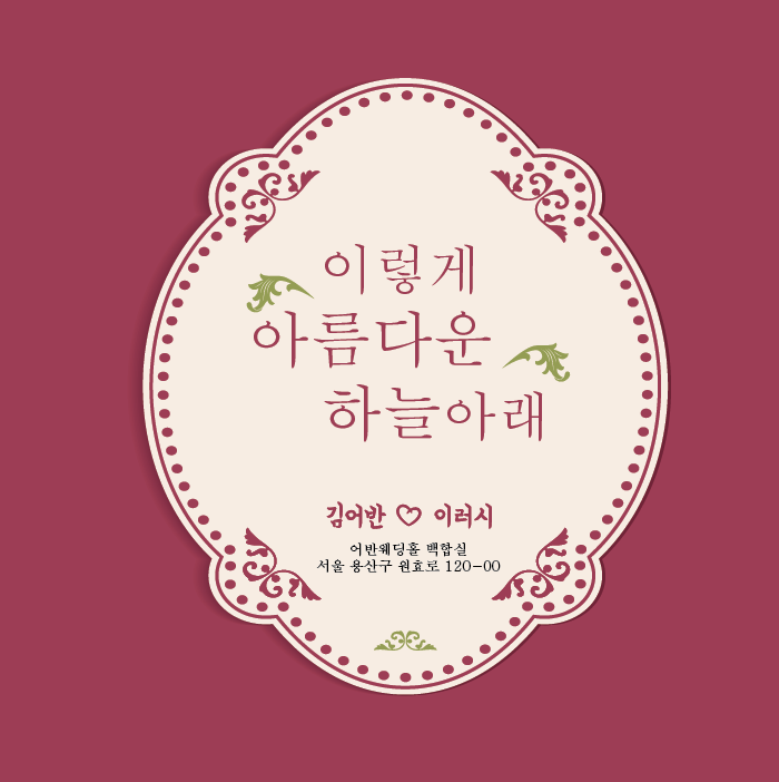 기독교식 결혼식에서 사용할 수 있는 문구인 “이렇게 아름다운 하늘아래”라는 문구가 있으며,