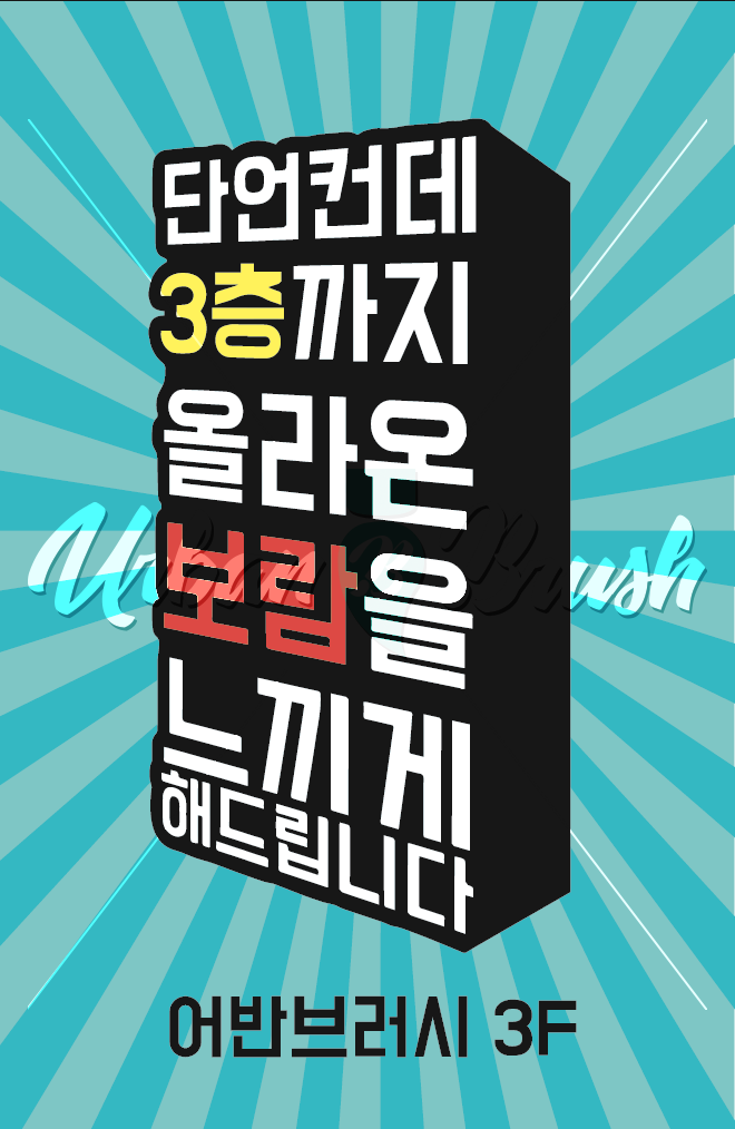 입체적으로 중요한 포인트 글씨는 중앙에 배치하였으며,