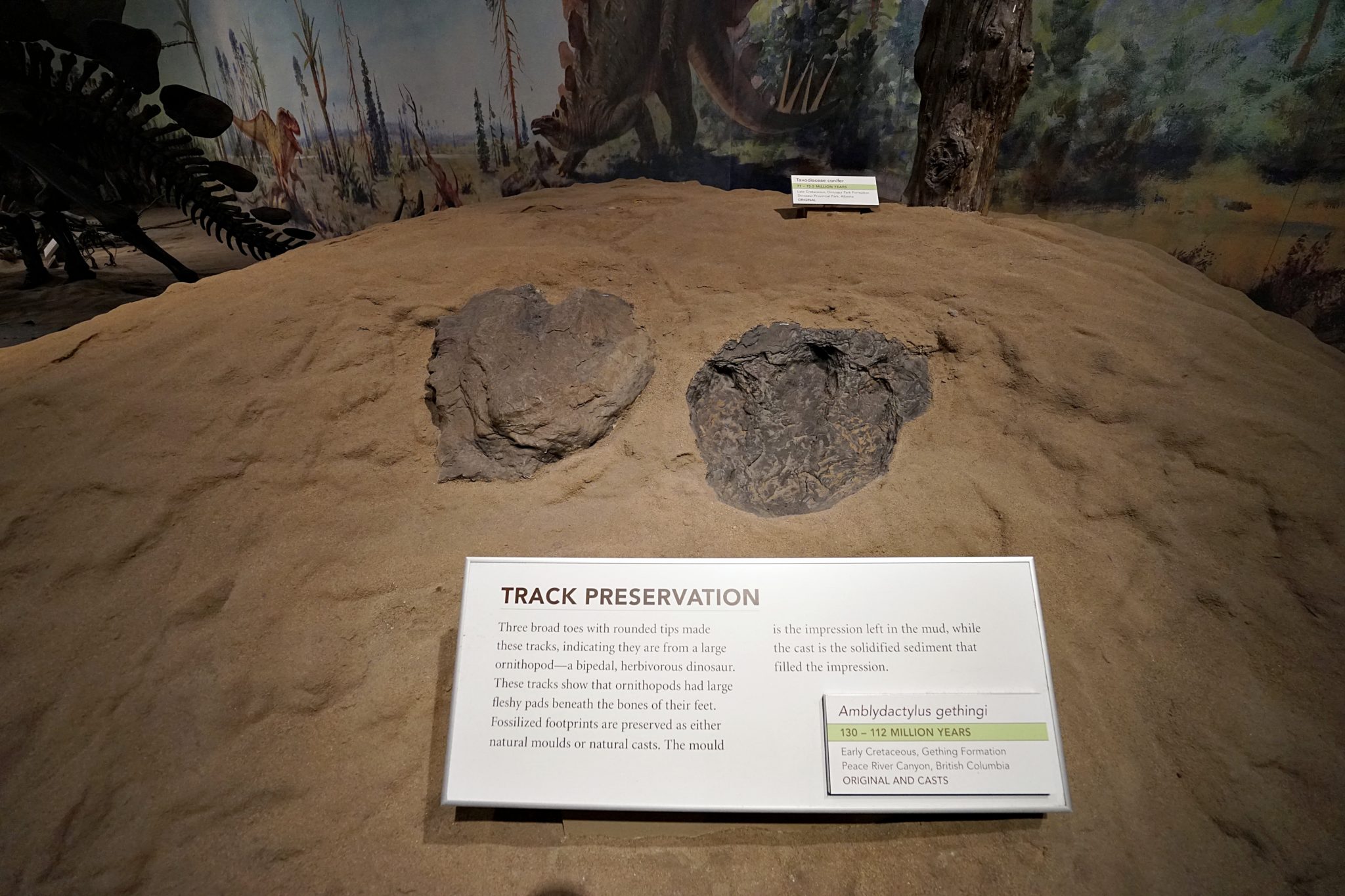 [KR] 안녕하세요. 어반브러시의 Dr. KM입니다. 아래 사진은 공룡발자국 화석 고화질 사진입니다. 발가락 세개가 선명하게 표현되어 있는 공룡의 실제 발자국 화석을 촬영한 사진입니다. 우측이 실제 발자국이며, 좌측은 이 발자국을 굴곡을 그대로 모형을 뜬 석고입니다. 아래 공룡 발자국 화석은 세계 최대의 공룡화석 발굴지역인 캐나다 알버타주의 로열 티렐 박물관에 전시되어 있습니다. 공룡에 관한 연구나 교육 자료 등으로 활용하기 좋습니다.