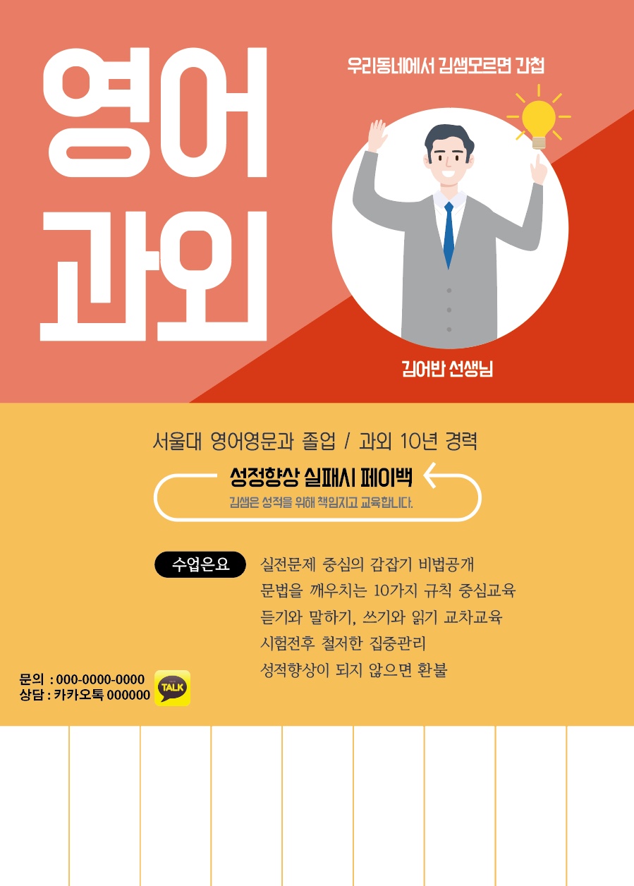 아래 시안은 과외 전단지 무료샘플 일러스트 시안입니다.
