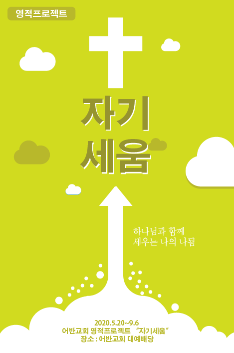 자기세움이라는 주제에 맞게 십자가와 아래서 올라오는 화살표가 만나 “자기세움”이라는 단어로 연결됩니다.