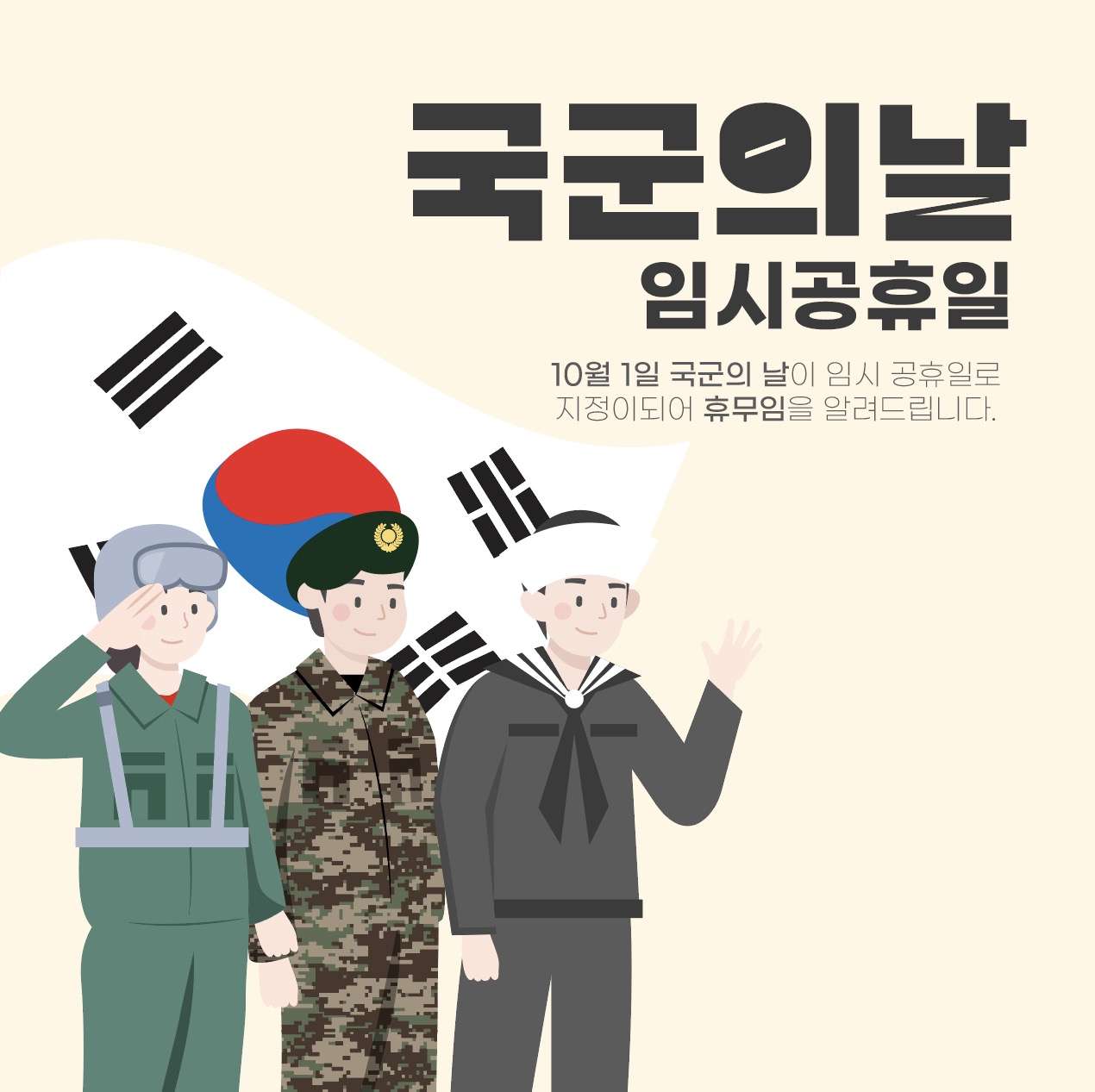 추천 카테고리 : 휴무안내, 국군의 날, 군인, 태극기, 10월, Holiday notice, Armed Forces Day, Soldiers, Taegeukgi, October