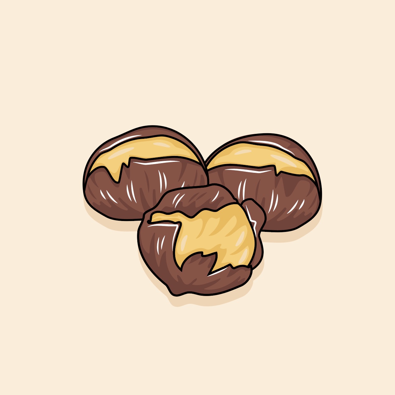 [KR] 안녕하세요. 어반브러시의 Master Creator Tommy입니다. 아래 이미지는 군밤 알밤 일러스트 ai png 샘플입니다. 잘 구워진 알밤을 표현한 일러스트 이미지입니다. 군밤의 특징을 묘사한 일러스트 이미지입니다. 알밤, 군밤, 군밤연물, 간식, 겨울간식, 군고구마, 찐밤 등과 관련된 카테고리에서 활용하기 적합한 일러스트 이미지입니다. 군밤 알밤 일러스트 ai png 벡터파일을 다운받아 군밤과 관련된 디자인물에 활용해시고, 그래픽 디자인 의뢰가 필요하시면 카카오톡 “디자이너 타미”를 검색해서 연락해주세요. 포함되어 있는 서체는 예시이며 파일에 포함되어 있지 않습니다. 사용여부는 폰트회사에 문의하시길 바랍니다.