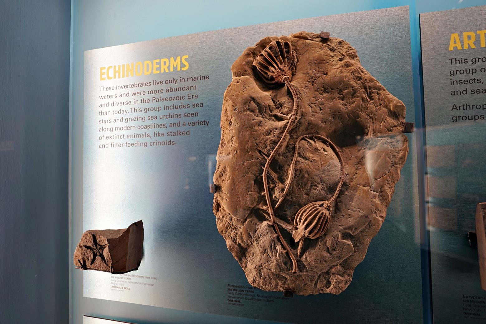 [KR] 안녕하세요. 어반브러시의 Dr. KM입니다. 아래 사진은 극피동물 화석 사진입니다. 해양생물 화석으로 고대의 극피동물의 모습을 관찰할 수 있는 사진입니다. 해당 화석은 캐나다 최대 해양화석 발굴지인 알버타주의 로열 티렐 박물관에 전시되어 있습니다. 교육이나 연구자료로 활용하기 적합합니다. 단, 상업적으로 이용할 경우에는 해당 박물관 측에 문의 후 사용해야합니다.