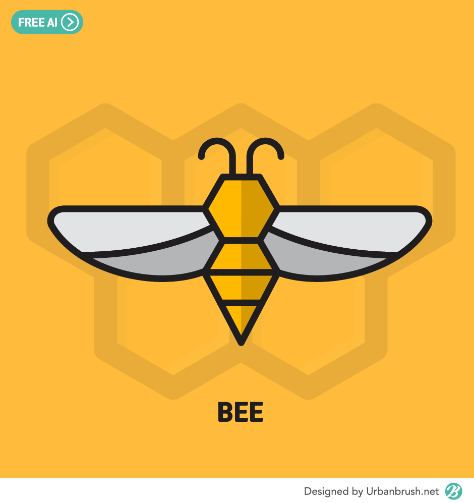 [EN] Hi. Urban Brush’s Master Creator Tommy. The image below is a bee illustration ai file sample. Illustration of an insect Illustrative illustration depicting a bee in the middle. Bee, honey, insects, bees and illustrations suitable for use in categories such as images. In the background, it is a bee, not a regular bee, including a honeycomb hexagon. Download the bee illustration vector file and use it for related design.