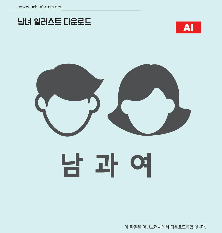 [KR] 안녕하세요. 어반브러시의 Master Creator Tommy입니다. 아래 이미지는 남녀 아이콘 일러스트 ai 파일 샘플입니다. 미용실, 미장원, 이발소 등과 관련된 디자인물 중에 학생 또는 젊은사람들을 나타내는 아이콘으로 활용하기 좋은 일러스트 이미지입니다. 남자 또는 여자를 구분하기 위한 디자인물에서도 활용할 수 있는 일러스트 이미지입니다. 파일을 다운받아 남녀와 관련된 디자인물에 활용하시길 바랍니다.