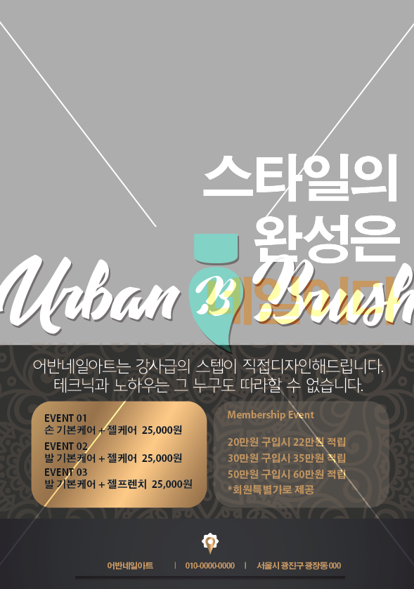 아래의 시안은 네일샵에서 사용할 수 있는 전단지입니다.