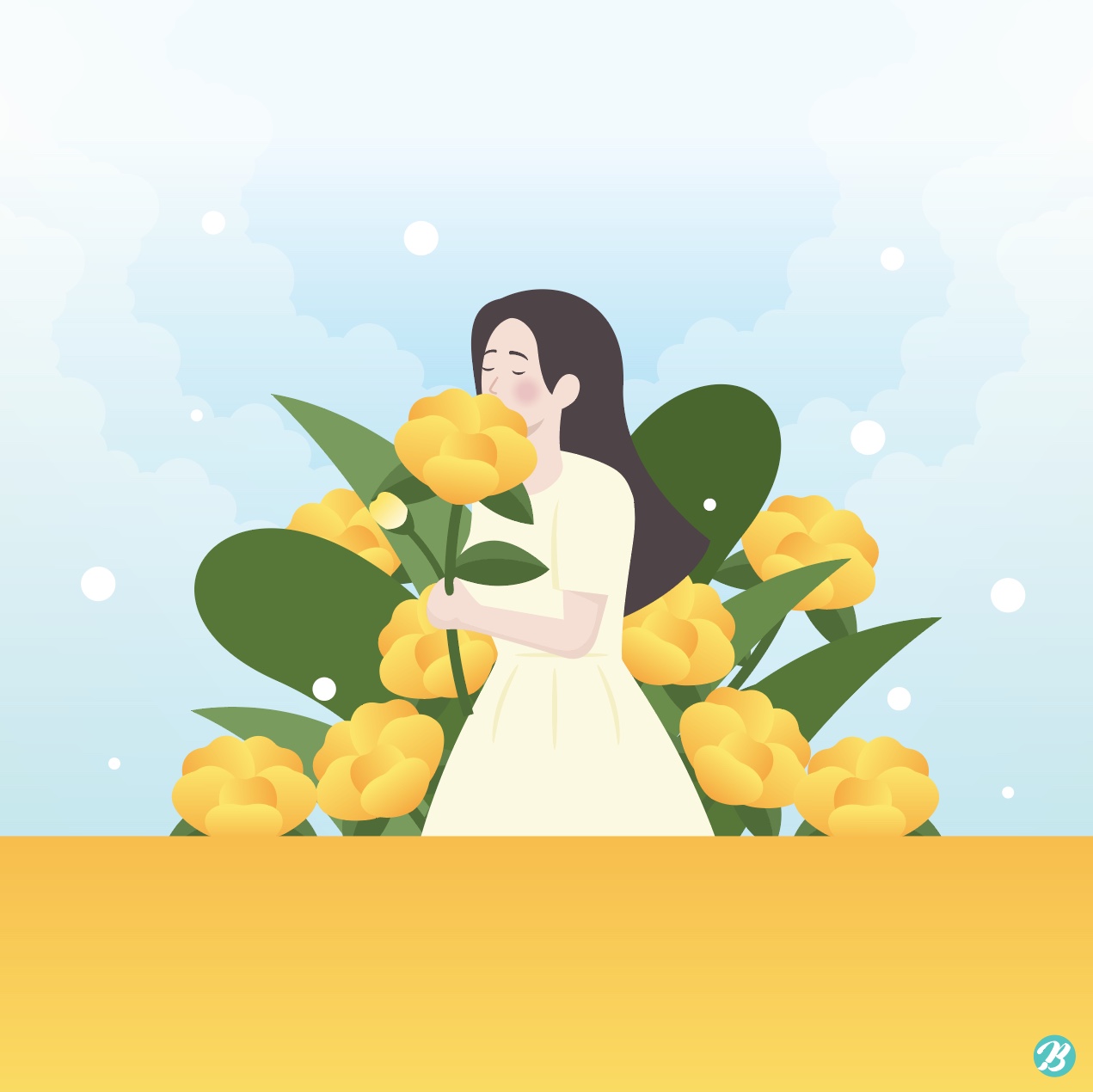 [EN] Hi. This is Tommy, the Master Creator of Urban Brush. The image below is a sample of a yellow flower girl illustration. It is an illustration image that expresses a woman smelling a yellow flower. It is an illustration image depicting a woman and a flower. It is an illustrative image suitable for use in categories related to spring, flowers, women, plants, and girls. Download the yellow flower girl illustration vector file and use it for design related to spring. If you need a graphic design request, please search KakaoTalk "Designer Tommy" and contact us. Included fonts are examples and are not included in the file. Please inquire with the font company for use.