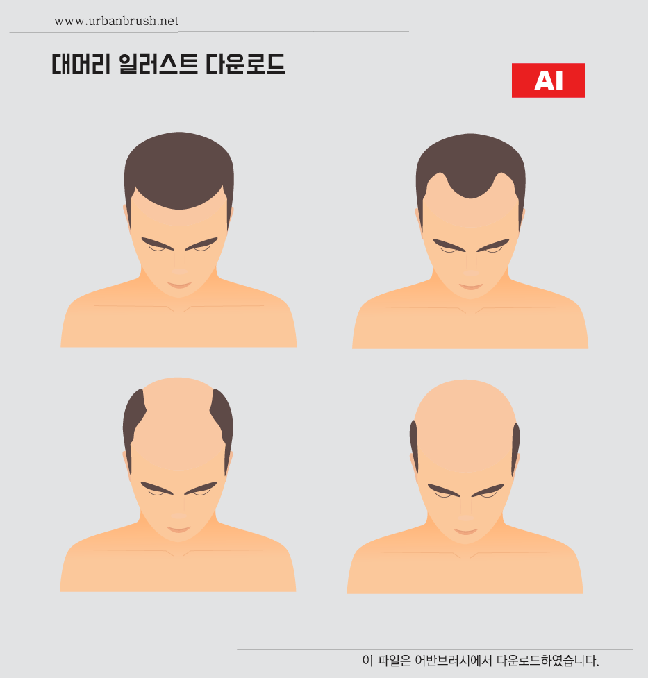 [EN] Hi. Urban Brush’s Master Creator Tommy. The image below is a sample bald illustrations ai file. Depending on the degree of baldness, comes with images of four male illustrations. You can also use it as an illustration to show the process of becoming bald or severe. Hair shop, scalp management, hair loss management, and can be used in categories such as illustrations. Download the file and use it for design related to baldness.
