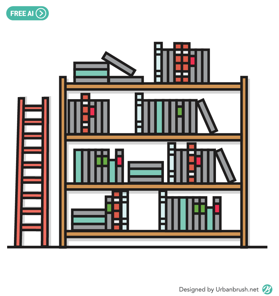 [EN] Hi. Urban Brush’s Master Creator Tommy. The image below is a sample library ai file. It is an illustration image depicting a bookcase of a general book reading room. A variety of book types are displayed on the bookshelf. The left side also contains a ladder. Ideal for use in categories related to libraries, reading rooms, books, study, learning, reading, and more. Download the library illustration vector file and use it for related design.