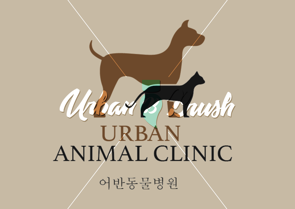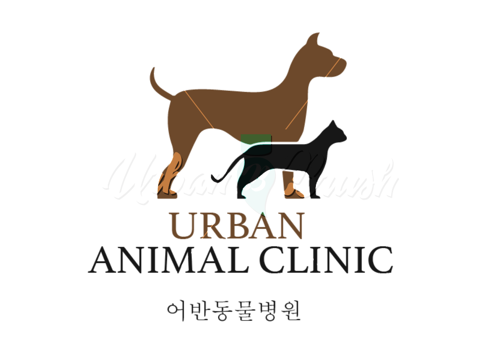 강아지와 고양이가 메인로고에 있는 일반적인 동물병원로고입니다.