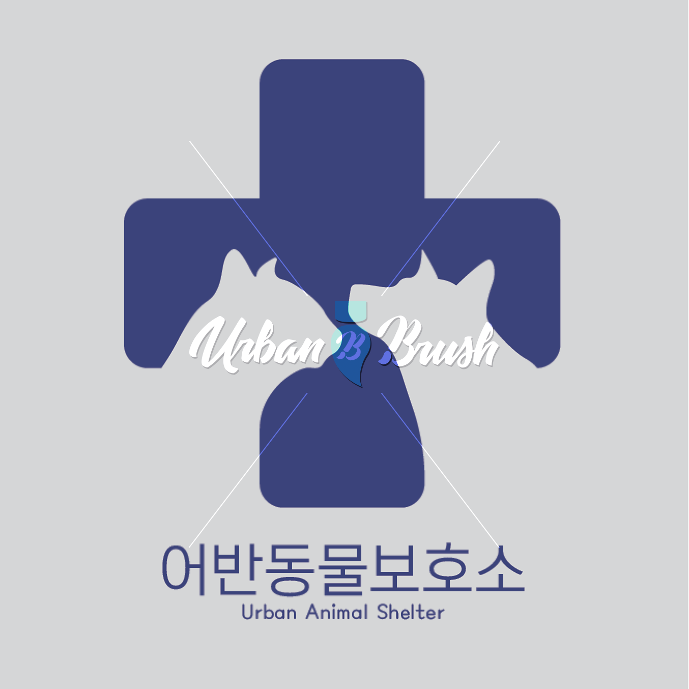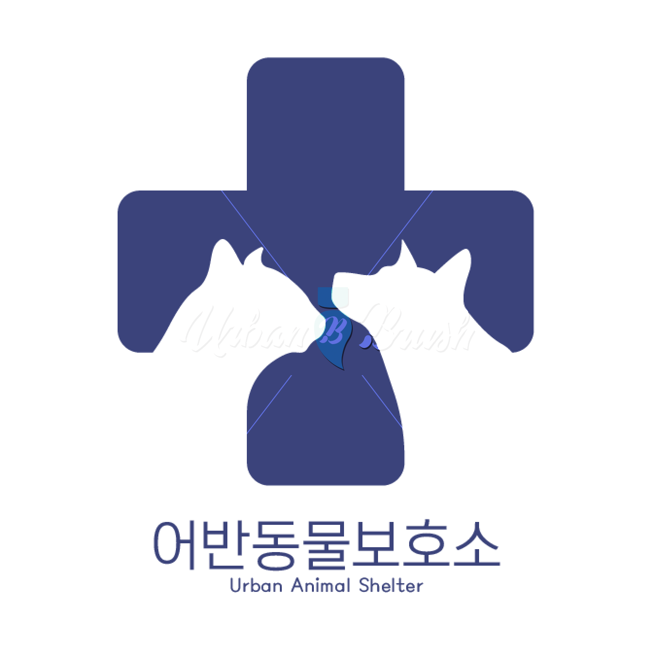 강아지와 고양이의 형상과 병원을 뜻하는 십자가가 잘 어우러져 있는 디자인입니다.