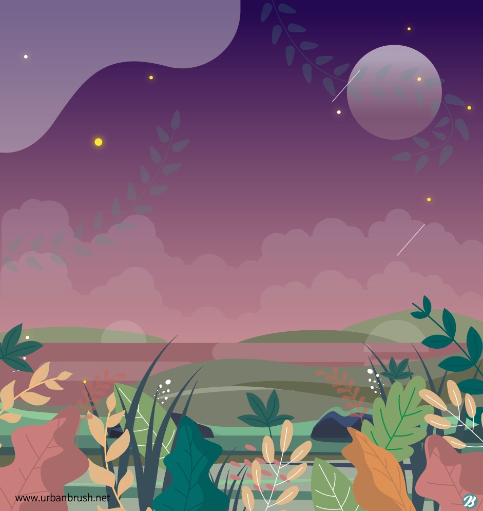 [KR] 안녕하세요. 어반브러시의 Master Creator Tommy입니다. 아래 이미지는 들판 저녁 풍경 일러스트 샘플입니다. 들판의 저녁의 풍경을 표현한 일러스트 이미지입니다. 호수와 산, 나뭇잎이 있는 숲의 밤풍경을 묘사한 일러스트 이미지입니다. 밤풍경, 나뭇잎, 호수, 산, 숲, 자연, 저녁, 밤 등과 관련된 카테고리에서 활용하기 적합한 일러스트 이미지입니다. 들판 저녁 풍경 일러스트 일러스트 벡터파일을 다운받아 밤풍경과 관련된 디자인물에 활용해보세요.