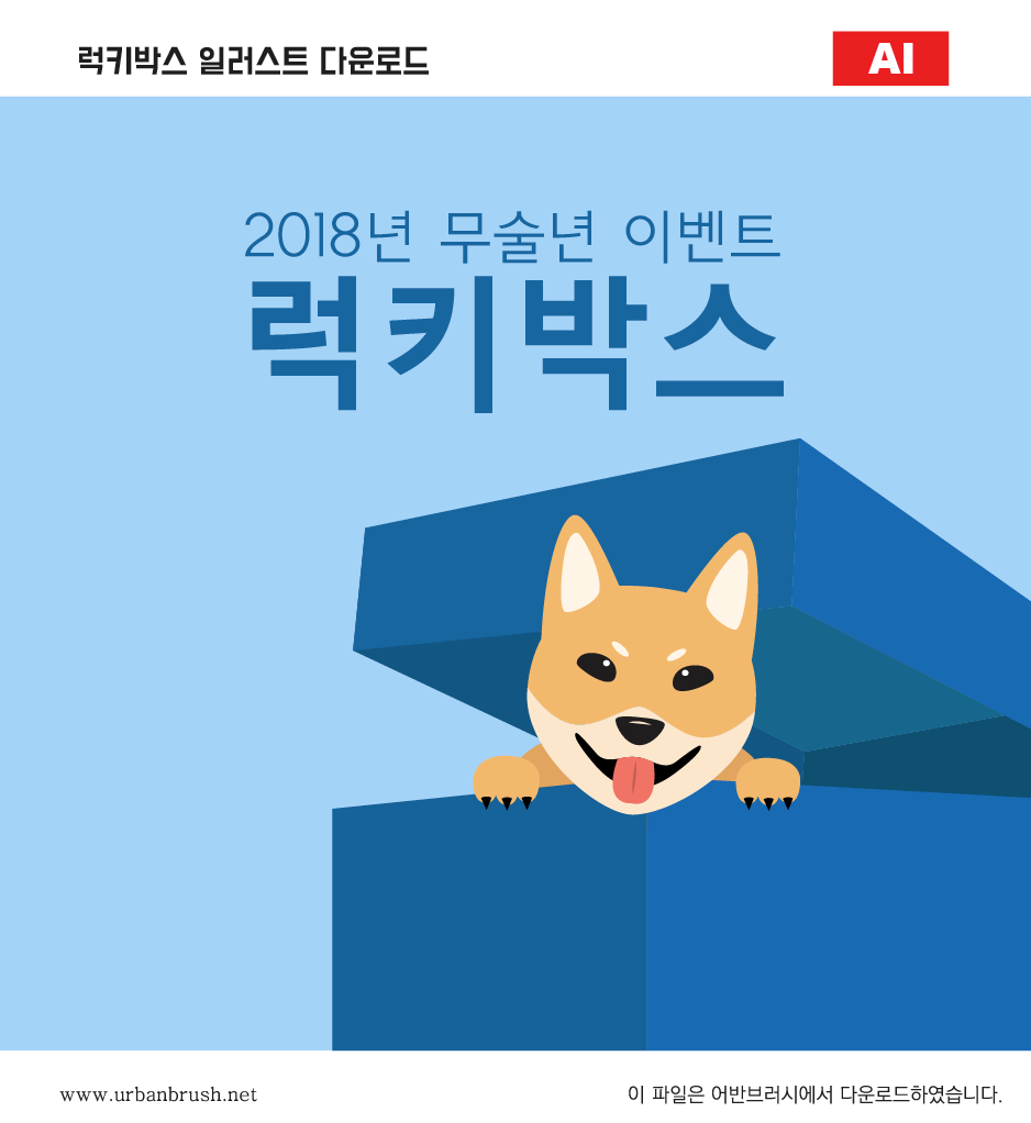 [EN] Hi. Urban Brush’s Master Creator Tommy. The image below is a sample of Lucky Box Illustrations ai file. This is an illustrative image that can be used at the time of the Lucky Box event that can be used to welcome the martial arts dog belt in 2018. This is an image depicting Jindo Dog in a box with his head extended and laughing. Download the file and use it for your design related to Lucky Box.