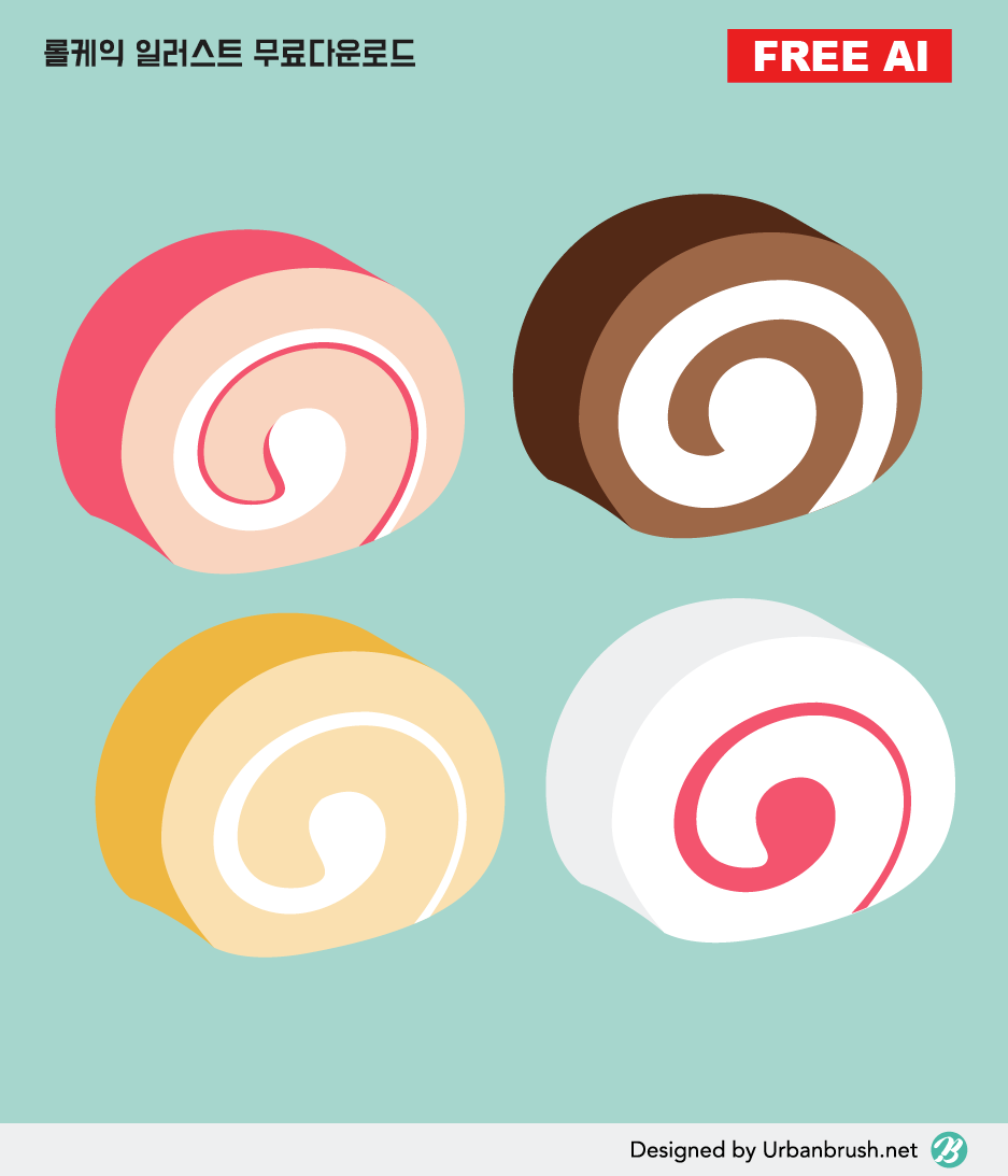 [EN] Hi. Urban Brush’s Master Creator Tommy. The image below is a sample of roll cake illustrations ai file. It is a rollcake illustration image that is expressed in various flavors. Strawberry flavor, chocolate flavor, basic flavor, white flavor, and adding toppings on top of each cake, you can express more cakes. Bakery, bakery and other related categories Illustrations can be used in the image. Download the file and apply it to your rollcake-related designs.
