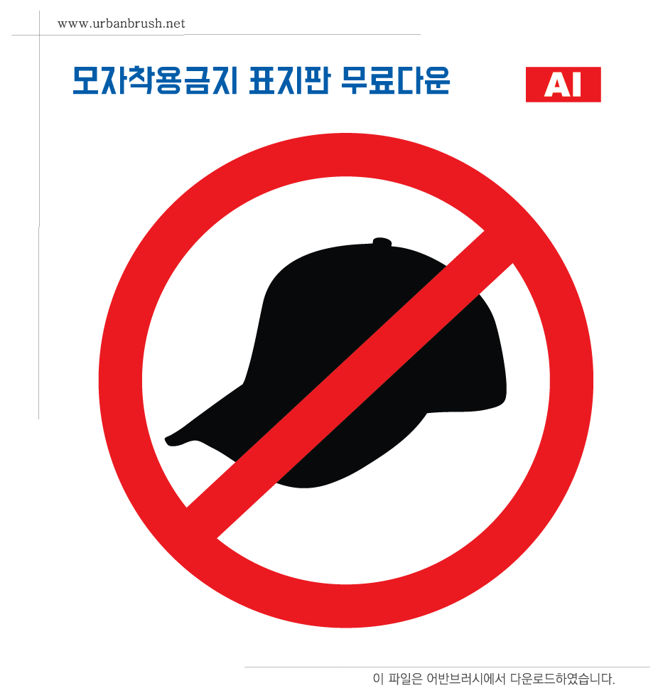 [KR] 안녕하세요. 어반브러시의 Master Creator Tommy입니다. 아래 이미지는 모자 착용 금지 일러스트 ai 표지판 샘플 이미지입니다. 모자착용이 금지되어 있는 공공장손에서 사용할 수 있는 모자 금지 일러스트 이미지입니다. 파일을 다운받아서 모자착용 금지 표지판을 제작해보세요.