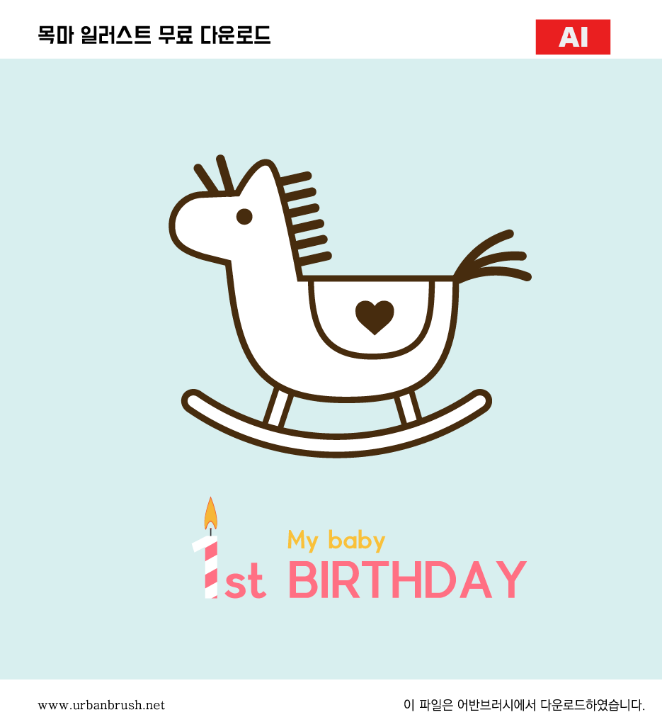 [KR] 안녕하세요. 어반브러시의 Master Creator Tommy입니다. 아래 이미지는 목마 일러스트 ai 파일 샘플입니다. 아기관련 디자인물이나 돌잔치와 관련된 이미지물 등에 자주 활용이 되는 나무로 제작된 목마를 모델로 제작된 일러스트 이미지입니다. 아래 이미지는 돌잔치에 관한 내용을 포함하고 있으며, 돌잔치 초대장, 동영상 페이지 등에 활용할 수 있도록 제작되었습니다. 파일을 다운받아 목마관련 디자인물에 활용해보세요.