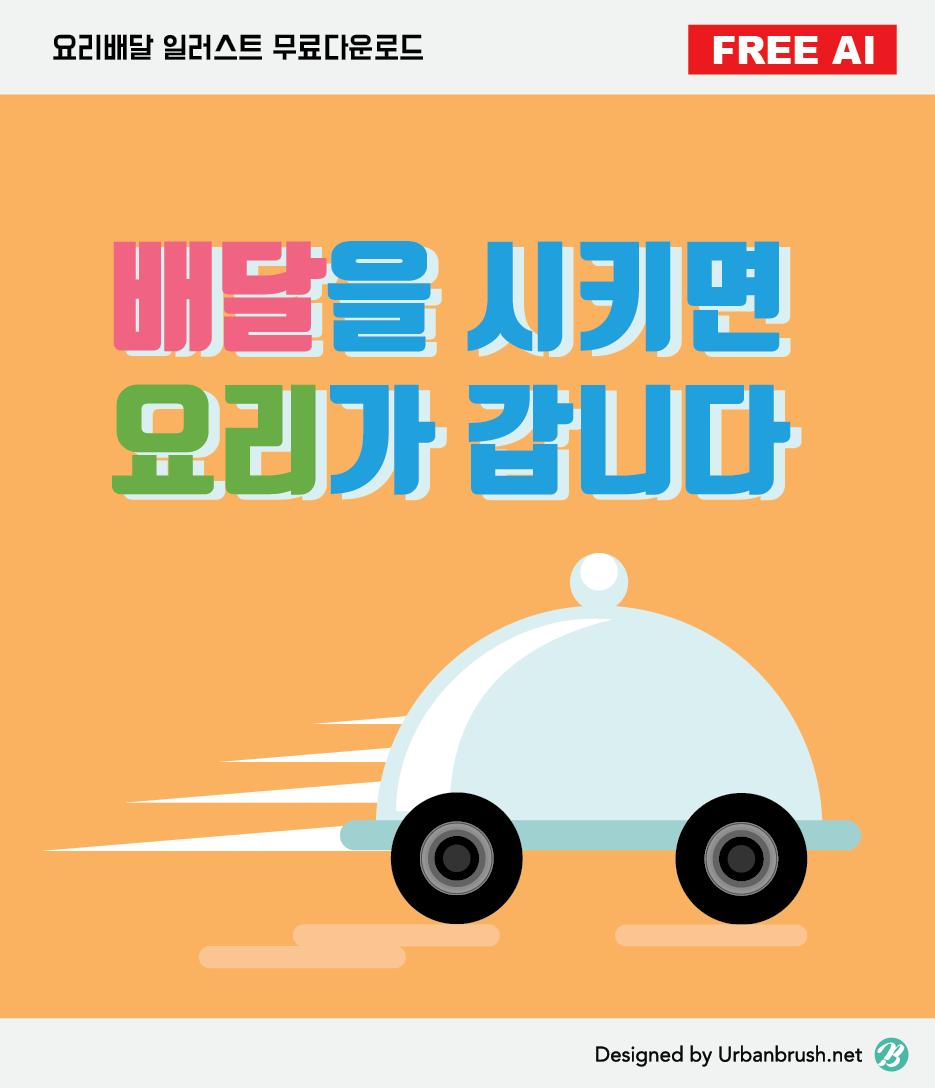 [KR] 안녕하세요. 어반브러시의 Master Creator Tommy입니다. 아래 이미지는 배달요리 일러스트 ai 파일 샘플입니다. 요리전문점에서 볼 수 있는 접시와 덮개 아래 바퀴를 달아서 요리를 배달해 준다는 의미를 표현한 일러스트 이미지입니다. 배달음식점, 배달업체, 요리배달 등의 카테고리에서 활용하기 적합한 일러스트 이미지입니다. 이미지와 어울리는 문구인 “배달을 시키면 요리가 갑니다”가 포함되어 있습니다. 파일을 다운받아 배달요리와 관련된 디자인물에 활용해보세요.