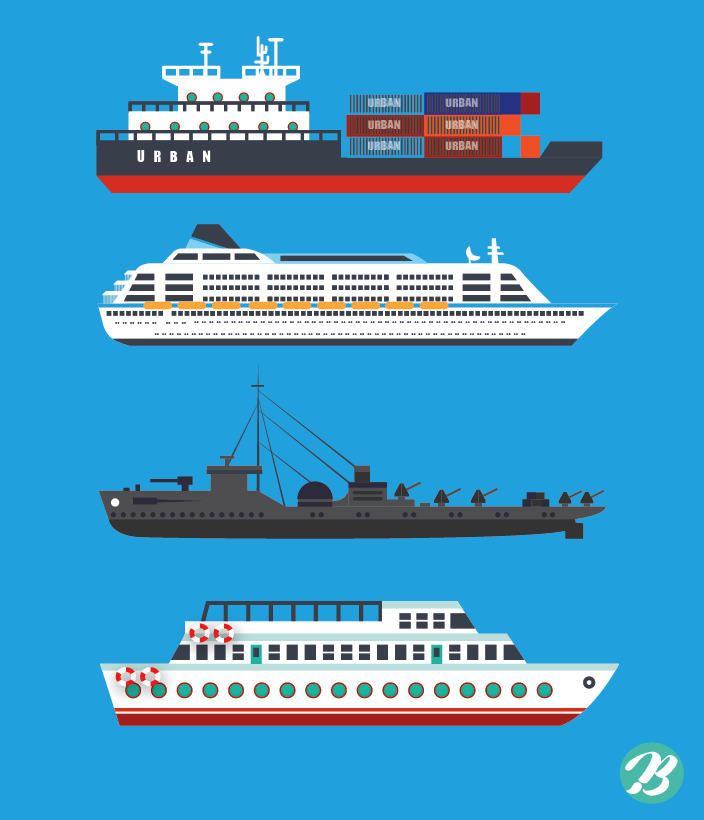 4가지 종류의 배가 포함되어 있으며, 바다, 해양, 선박, 배와 관련된 카테고리에서 사용하기 좋습니다.