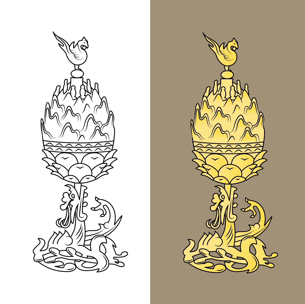 [EN] Hi. This is Urban Brush’s Master Creator Tommy. The image below is a sample illustration of the Baekje Geumdongdaehangro. It is an illustration image that expresses the characteristics of the Baekje Gilt-bronze route, which is a representative relic of Baekje. It is an illustration image depicting the gilt-bronze route, a relic of Buyeo, a gilt-bronze old man. It is an illustrative image suitable for use in categories related to cultural heritage, Baekje, Buyeo, national treasures, gilt-bronze routes, museums, Buddhist scriptures, and incense burners. Download the Baekje Geumdongdaehangro illustration vector file and use it for design related to ancient artifacts. If you need a graphic design request, search KakaoTalk “Designer Tammy” and contact us. The fonts included are examples and are not included in the file. Please contact the font company for usage.