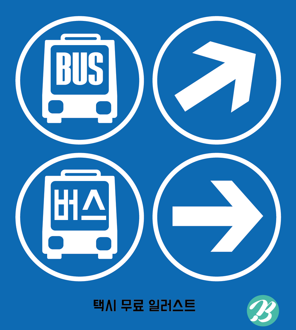 버스정류장이나 버스 정류장 방향을 안내하는 표지판 등에서 활용 가능한 이미지입니다.