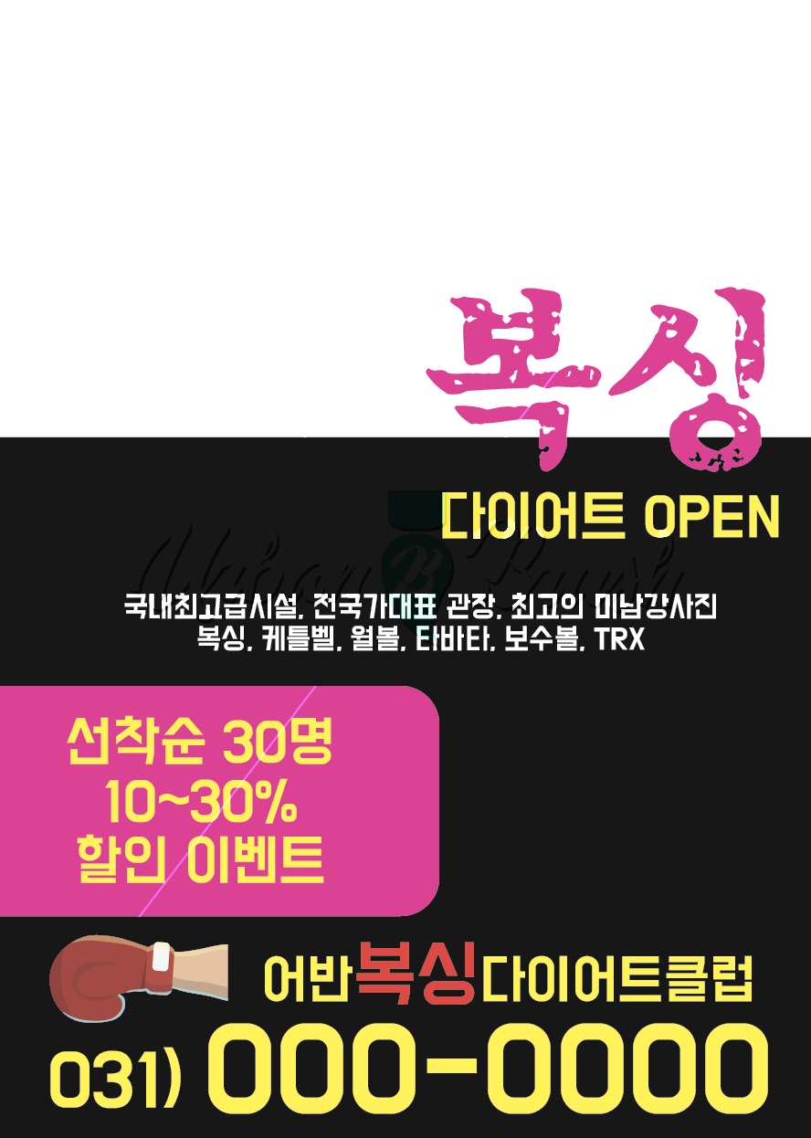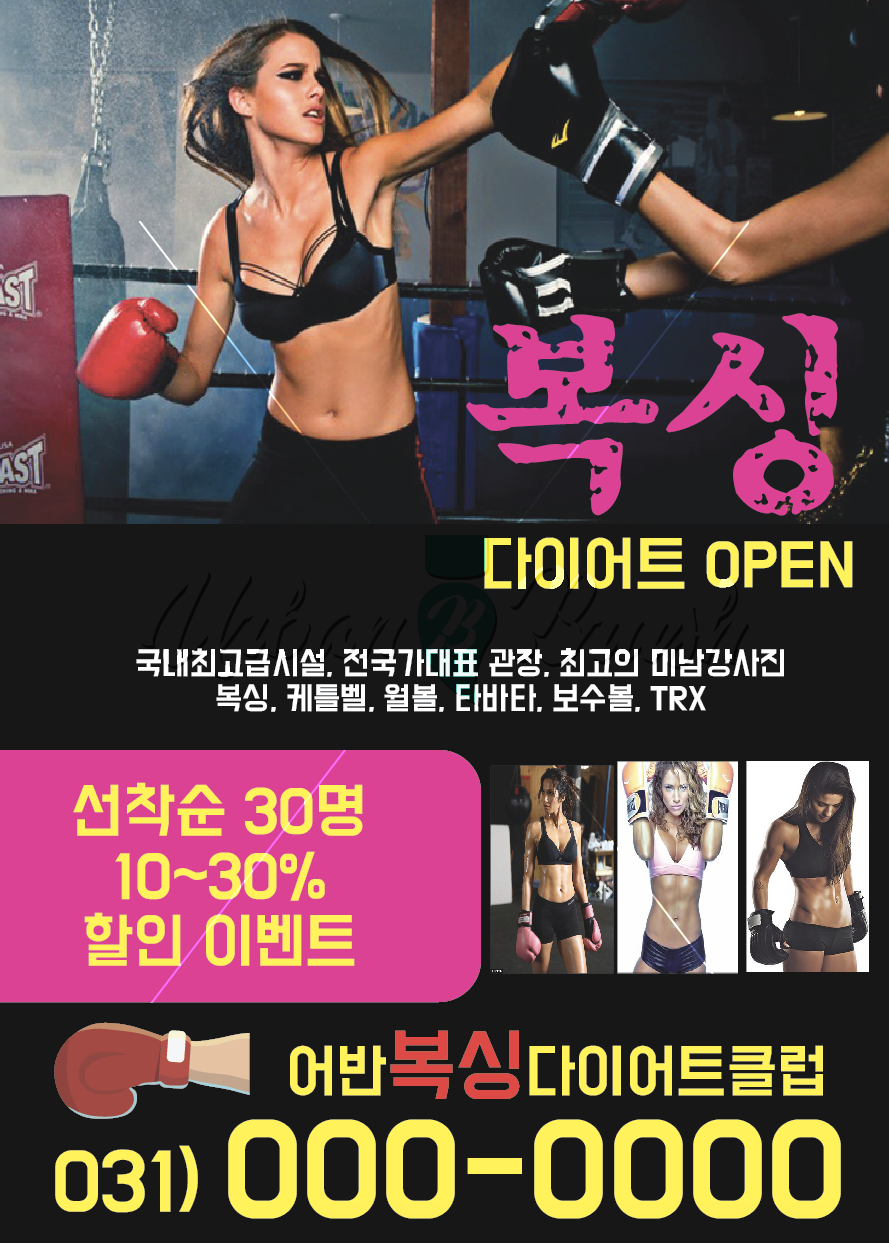 아래 시안은 복싱 다이어트 클럽에서 사용하기 적합한 전단지 시안입니다.
