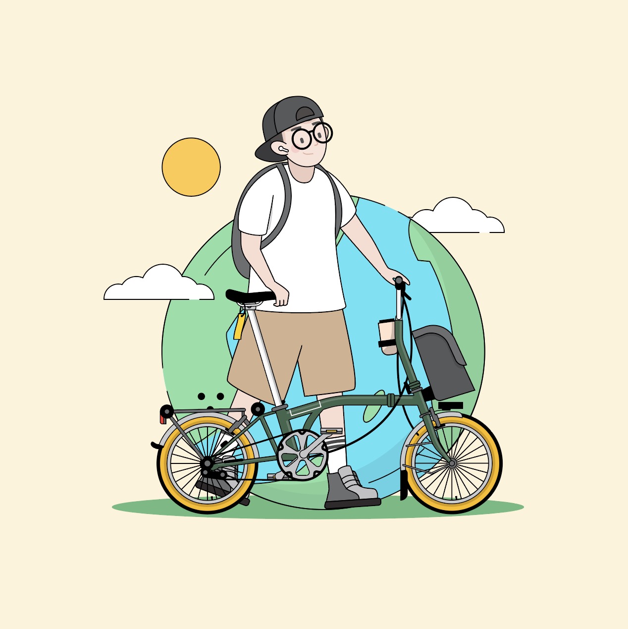[EN] Hi. Hello, I’m Tommy, Master Creator of Urban Brush. The image below is a sample of a Brompton bicycle travel illustration ai. It is an illustration image expressing the appearance of walking with a Brompton. It is an illustration image depicting a rider going on a bicycle tour toward the world. It is an illustration image suitable for use in categories related to bicycle riding, Brompton, minivelo, tri-fold bicycle, earth travel, etc. Download the Brompton bicycle travel illustration ai vector file and use it for designs related to bicycle travel. If you need to request a graphic design, please search for “Designer Tommy” on KakaoTalk and contact us. The included fonts are examples and are not included in the file. Please contact the font company for usage.