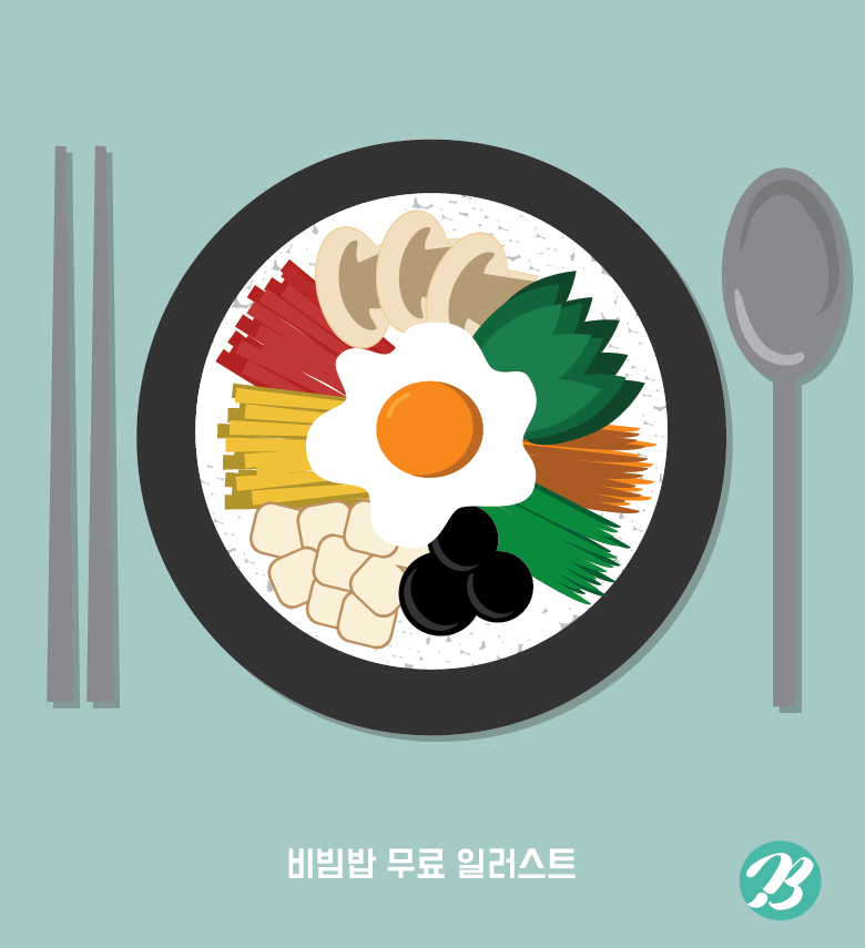 비빔밥 일러스트 파일을 다운받아서 비빔밥 관련 디자인물을 제작해보세요.