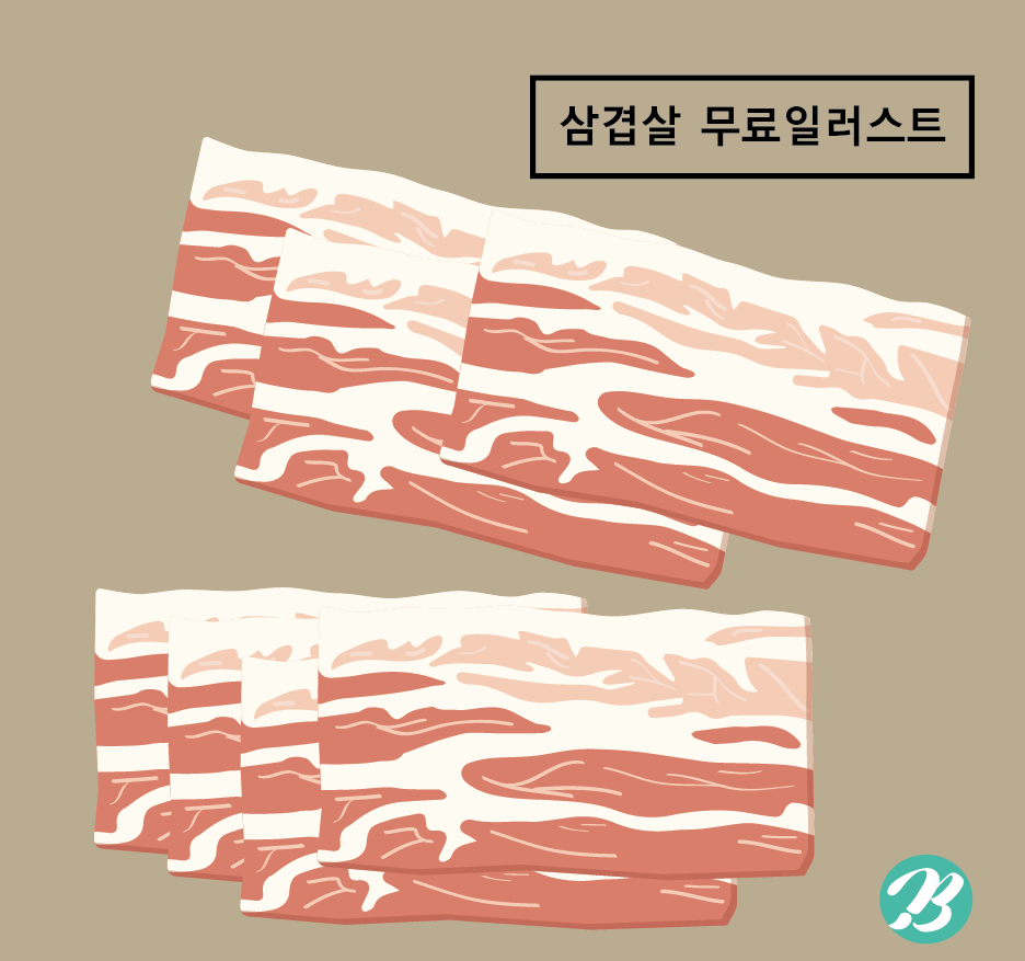 대한민국에서 가장 사랑받는 돼지고기 부위인 삼겹살 일러스트입니다.
