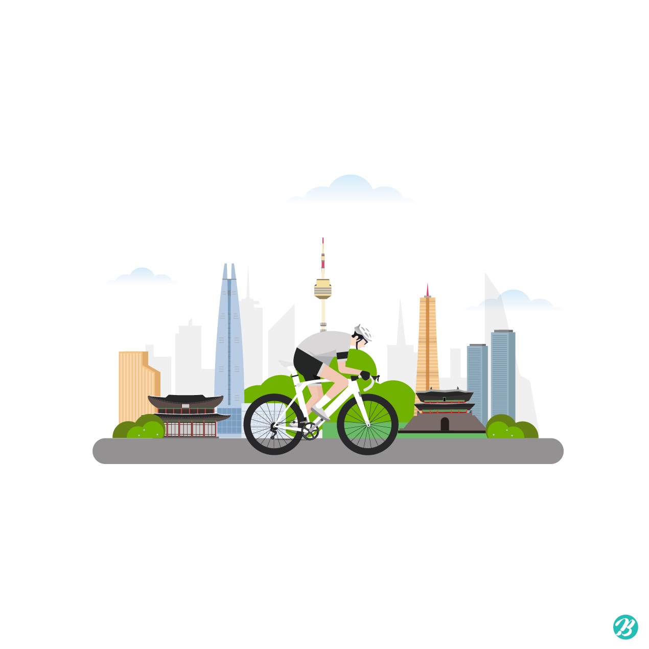 [EN] Hi. This is Tommy, Master Creator of Urban Brush. The image below is a sample illustration of a bicycle riding landscape in Seoul. It is an illustration image expressing a person riding a bicycle with Seoul in the background. It is an illustration image depicting a bicycle rider. This image is suitable for use in categories related to Seoul Tour, Seoul Bike, Seoul Bike Club, Cycle, Road Bike, etc. Download the Seoul bicycle riding landscape illustration illustration vector file and use it for design related to bicycle riding. If you need a graphic design request, please search Kakao Talk "Designer Tommy" and contact us (work request field: logo production, branding, flyers , posters, leaflets, promotional materials, branding, characters, etc.).