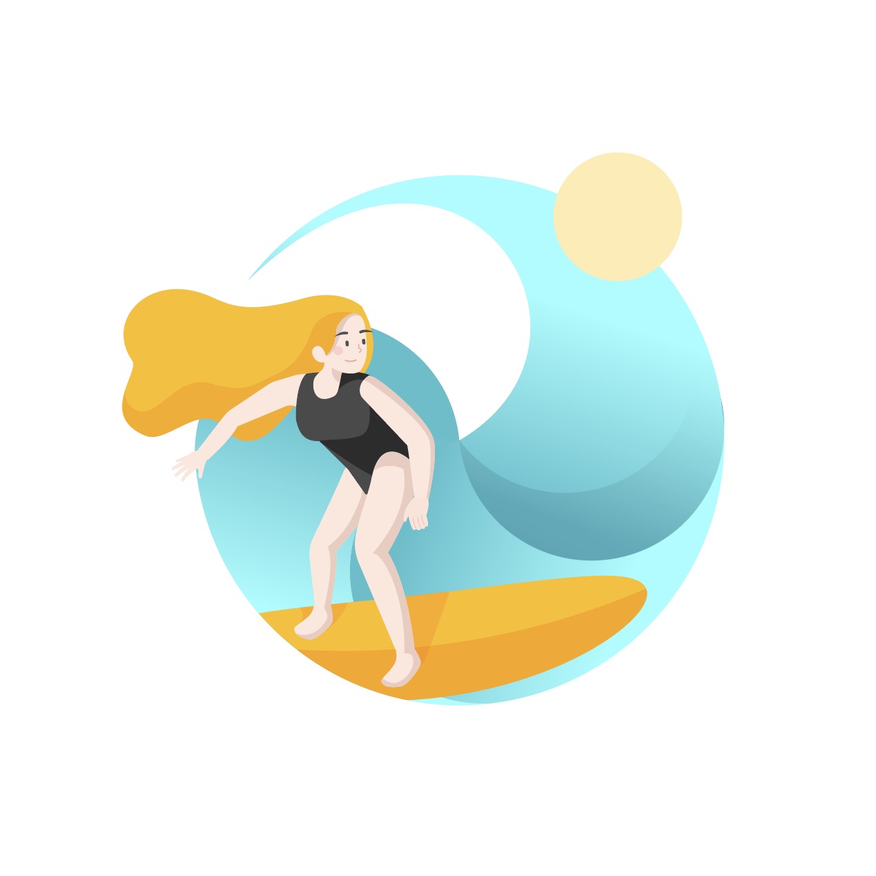 [EN] Hi. This is Tommy, the Master Creator of Urban Brush. The image below is a sample of a surfing wave woman illustration ai. It is an illustration image expressing a woman surfing while riding a wave. It is an illustration image depicting a female surfer surfing. It is an illustration image suitable for use in categories related to waves, surfers, women, surfing, leisure, sports, and the sea. Download the surfing wave woman illustration illustration ai vector file and use it for surfing-related designs. If you need to request a graphic design, please search for “Designer Tommy” on KakaoTalk and contact us. The included fonts are examples and are not included in the file. Please contact the font company for usage.