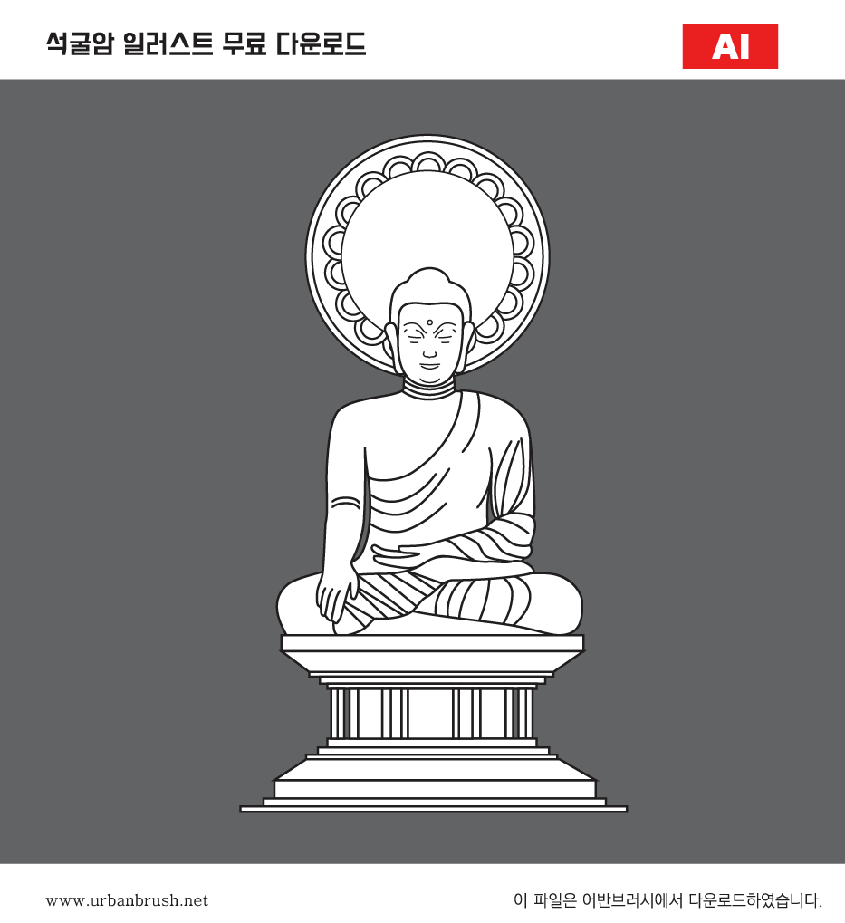 [EN] Hi. Urban Brush’s Master Creator Tommy. The image below is a sample of Seokguram illustration ai file. This image is an illustration of Seokguram, a national treasure number 24 in Gyeongju City, South Korea. It is an illustrative image that can be utilized in categories related to tourism, history, culture, and travel in Korea. It is also called the Seobul Temple, the Seokgul, and the Jojaga Temple. It is a cave that reflects the architecture and formative art of the Silla Dynasty. Download the file and apply it to the design related to Seokguram.