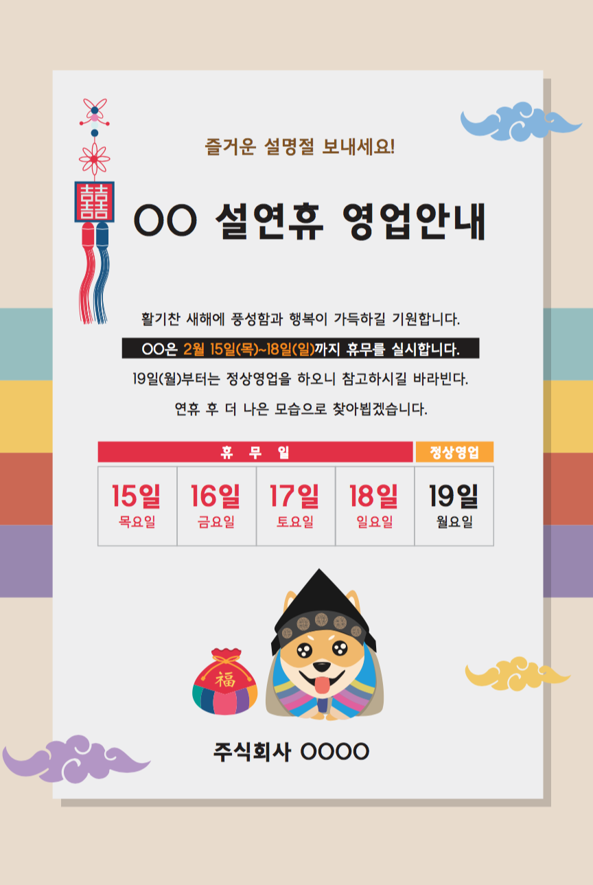 설연휴 안내 A4출력용 일러스트 ai 무료다운로드