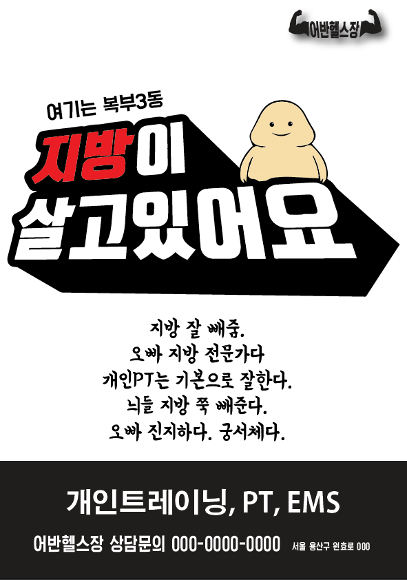 아래 시안은 재미있는 문구가 이색적인 헬스장 전단지 샘플입니다.