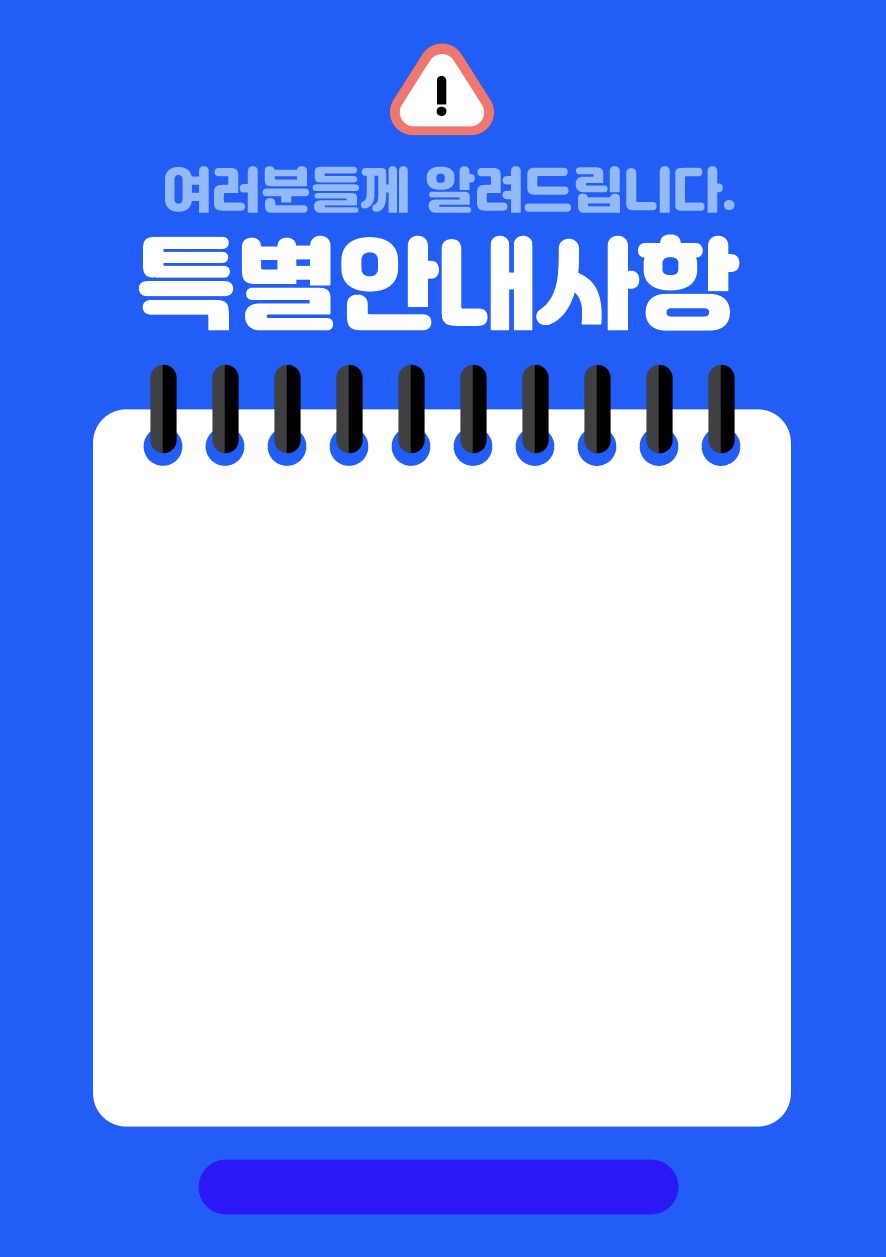 추천 카테고리 : 안내문, 공사중, 공지사항, 예약안내, 안내문 포스터, 안내문 전단지, Notice, Under Construction, Announcement, Reservation Guide, Notice Poster, Notice Flyer, 공책, 메모지