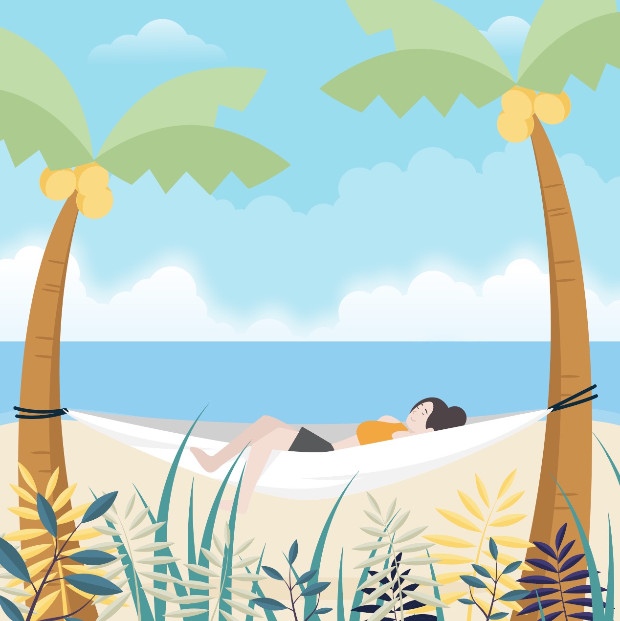 [EN] Hi. It is an urban brush. The image below is a sample summer sea hammock nap illustration. It is an illustration image expressing a woman taking a nap with a hammock under a palm tree in front of the summer sea. It is an illustration image depicting a person taking a nap in a hammock. It is an illustrative image suitable for use in categories related to naps, hammocks, palm trees, summer, vacations, vacations, recreation, and relaxation. Download the summer sea hammock nap illustration vector file and use it for design related to summer, and if you need a graphic design request, search KakaoTalk “Urban Brush” and contact us. The fonts included are examples and are not included in the file. Please contact the font company for usage.