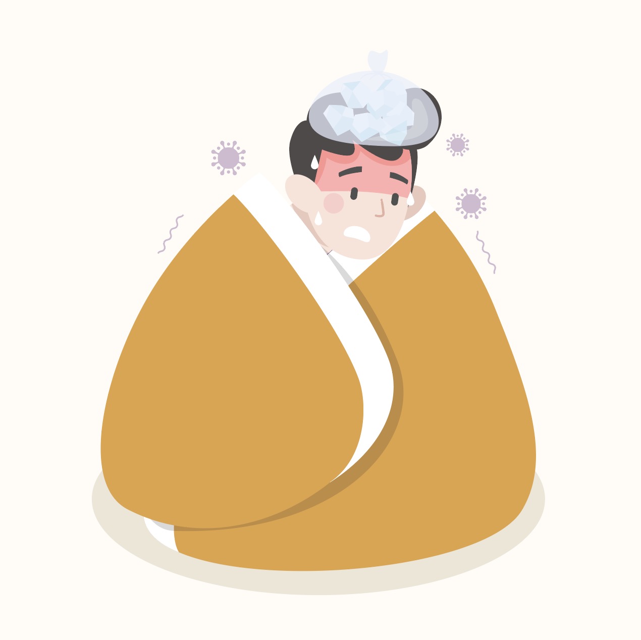 [EN] Hi. This is Urban Brush. The image below is a sample of ai illustration of the chills, cold, and flu virus. It is an illustration image expressing a cold patient covering themselves with a blanket due to chills and a cold. It is an illustration image depicting a person infected with a cold virus. It is an illustration image suitable for use in categories related to cold, flu, virus, corona, chills, fever, pneumonia, and fever. Download the chills, cold, and flu virus illustration ai vector file and use it for cold-related designs. If you need to request a graphic design, please search for “Urban Brush” on KakaoTalk and contact us. The included fonts are examples and are not included in the file. Please contact the font company for usage.