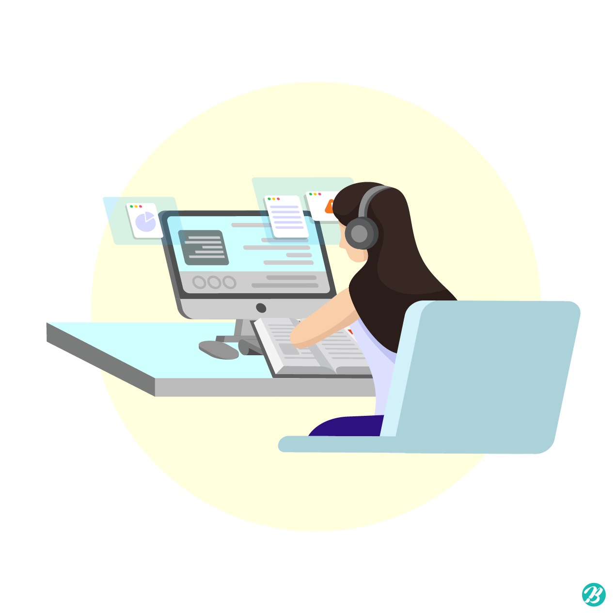 [KR] 안녕하세요. 어반브러시의 Master Creator Tommy입니다. 아래 이미지는 온라인 학습 일러스트 ai 다운로드 샘플입니다. 컴퓨터 앞에서 온라인강의 학습을 하고 있는 여학생을 표현한 일러스트 이미지입니다. 여학생이 헤드폰을 착용하고 컴퓨터 책상 앞에서 공부하고 있는 모습을 묘사한 일러스트 이미지입니다. 줌수업, 온라인수업, 온라인강의 인터넷강의, 온라인학습, 여학생, 공부, 학습, 교육 등과 관련된 카테고리에서 활용하기 적합한 일러스트 이미지입니다. 온라인 학습 일러스트 ai 다운로드 일러스트 벡터파일을 다운받아 교육과 관련된 디자인물에 활용해시고, 그래픽 디자인 의뢰가 필요하시면 카카오톡 "디자이너 타미"를 검색해서 연락해주세요(작업 의뢰 분야 : 로고제작, 브랜딩, 전단지, 포스터, 리플릿 홍보물, 브랜딩, 캐릭터 등).