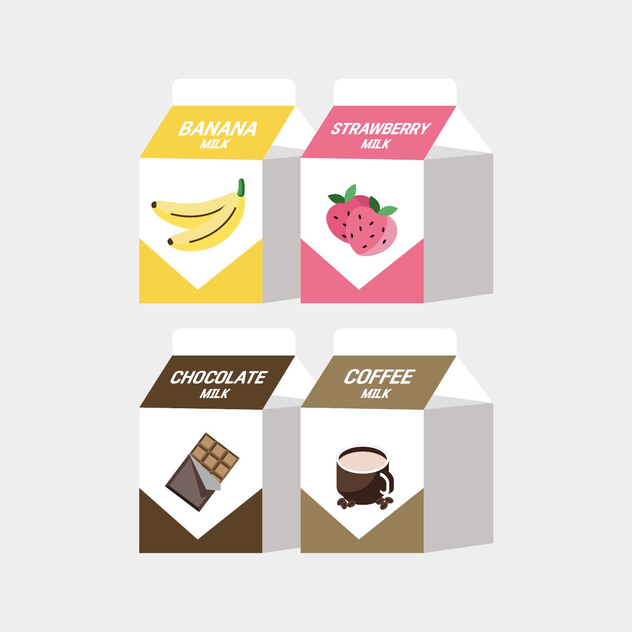 [EN] Hi. This is Urban Brush’s Master Creator Tommy. The image below is a sample milk type illustration. It is an illustration image expressing various types of milk. It is an illustration image depicting several milk cartons. It is an illustrative image suitable for use in categories related to coffee milk, chocolate milk, strawberry milk, and banana milk. Download the milk type illustration vector file and use it for design related to beverages. If you need a graphic design request, search KakaoTalk “Designer Tommy” and contact us. The fonts included are examples and are not included in the file. Please contact the font company for usage.