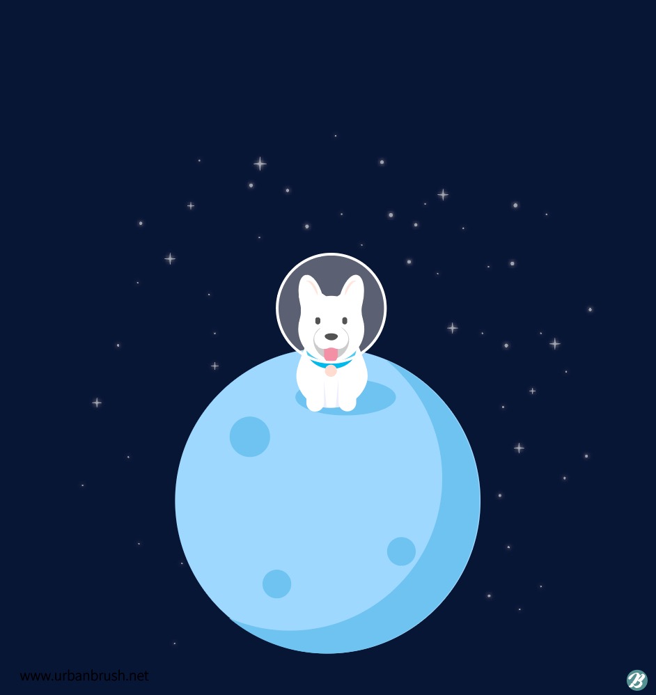 [EN] Hi. This is Urban Brush's Master Creator Tommy. The image below is a sample of a space dog illustration ai download. Illustration image of a dog wearing a space helmet and sitting on a planet. An illustrated image depicting a puppy sent to space. This is an illustration image suitable for use in categories related to space, dogs, planets, stars, space travel, etc. Download space dog illustration ai download illustration vector file and use it in animal related designs.