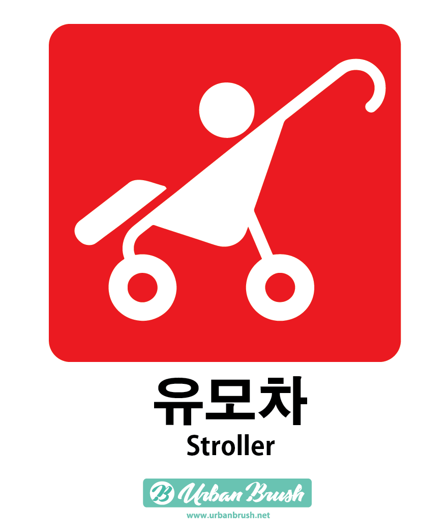 간단한 유모차 아이콘과 함께 적합한 문구를 사용하여 유모차 관련 표지판을 만들어 보세요.