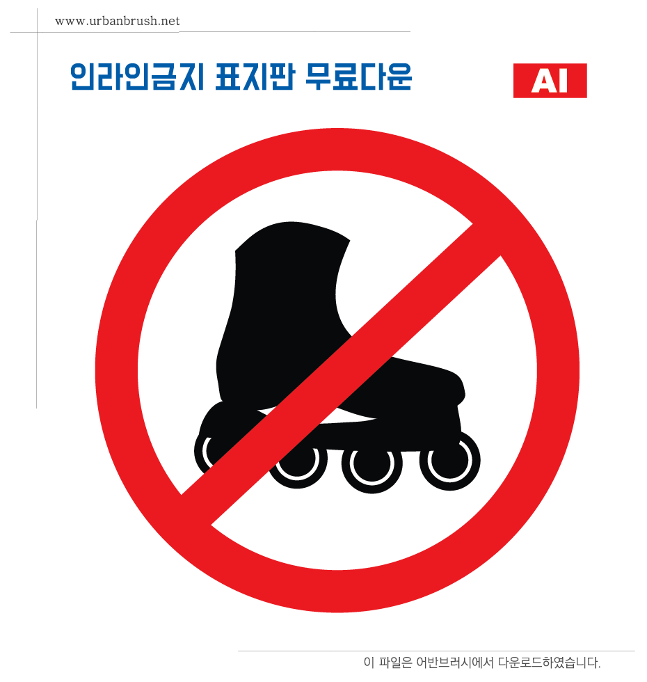 [KR] 안녕하세요. 어반브러시의 Master Creator Tommy입니다. 아래 이미지는 인라인스케이트가 금지되어 있는 곳에서 활용할 수 있는 인라인 스케이트 금지 일러스트 ai 파일 샘플입니다. 파일을 다운받아서 인라인금지 표지판을 제작해보세요.