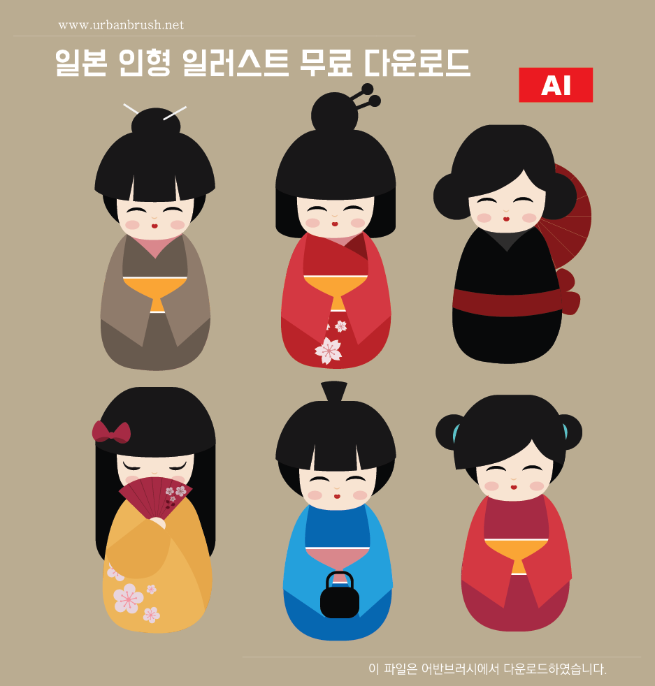 일본 인형 일러스트 ai 무료다운로드 – japan doll illustration