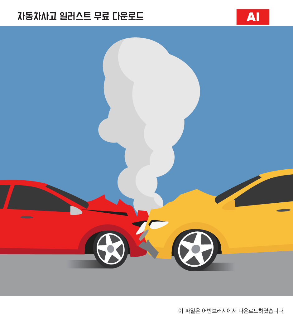 [KR] 안녕하세요. 어반브러시의 Master Creator Tommy입니다. 아래 이미지는 자동차사고 일러스트 ai 파일 샘플입니다. 두대의 자동차가 정면으로 충돌한 장면을 묘사한 일러스트 이미지입니다. 자동차 본넷에서 연기가 올라오고 있으며, 바닥에는 타이어자국을 묘사하였습니다. 파일을 다운받아 자동차사고와 관련된 디자인물에 활용해보세요.