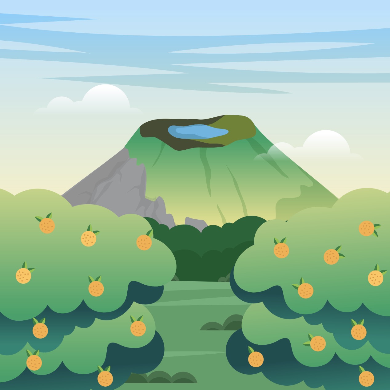 제주도 한라산 귤농장 일러스트 ai 다운로드 download Jeju Island Hallasan Tangerine Farm